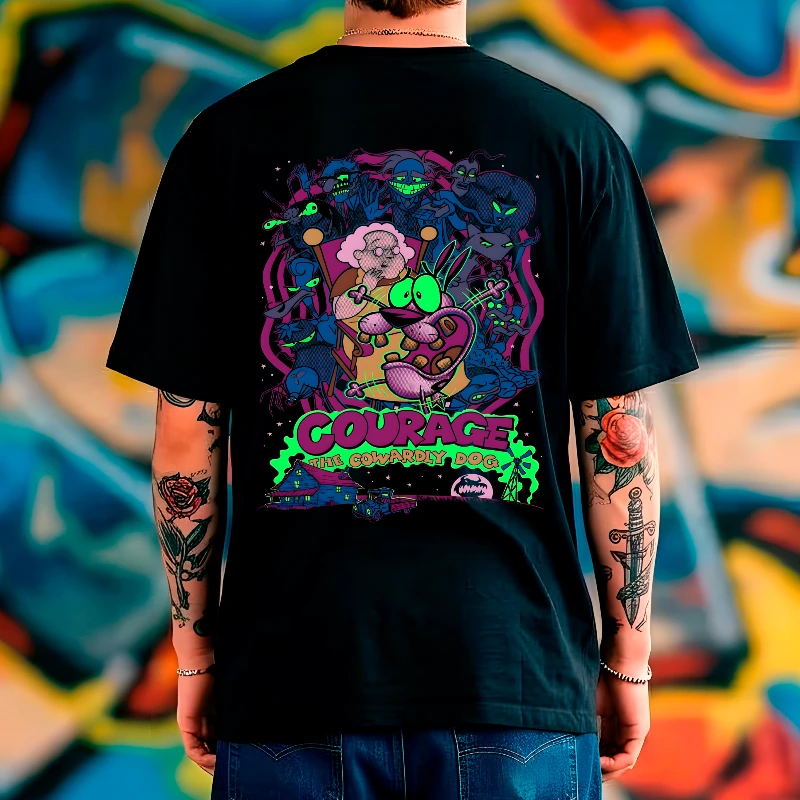 Rinde homenaje a la caricatura más aterradora y entrañable de nuestra infancia con este diseño espectacular que captura la verdadera esencia de "Coraje, el Perro Cobarde".
