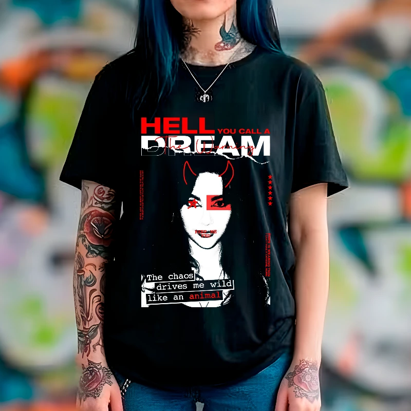 ¡Llamando a toda la "Warning Army"! Llega una pieza de colección que captura la energía indomable y el estilo único de Alejandra Villarreal. Presentamos la edición especial "Hell You Call A Dream", una playera que es puro poder, caos y rock 'n' roll.